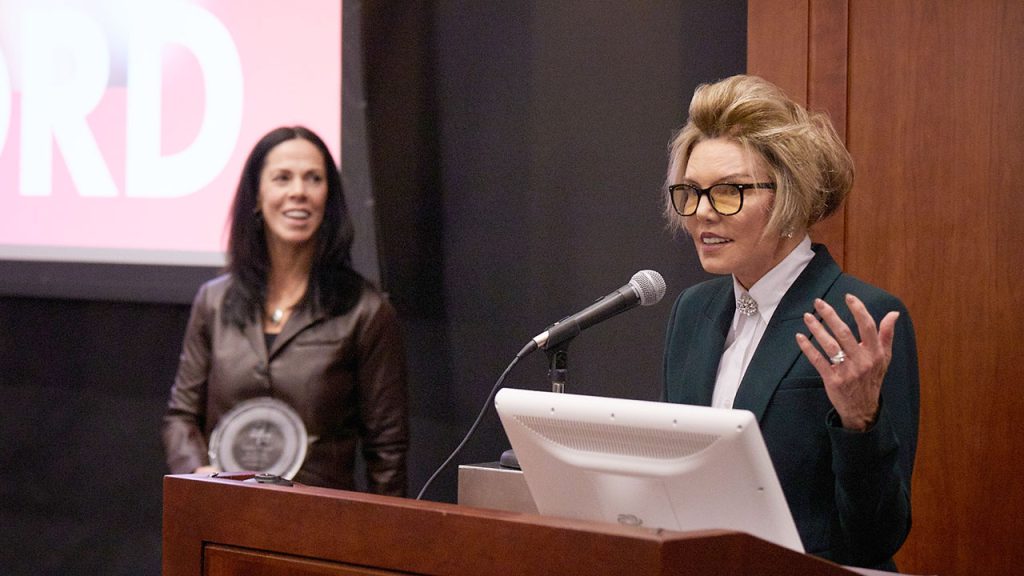 Two trailblazing women in media were honored at Fordham on Monday night: Connie Chung, the first Asian person and second woman to anchor a major nightly news program in the U.S., and sports journalist Lesley Visser, who was the first woman on the network broadcasts of the Super Bowl, Final Four, NBA, and World Series.
