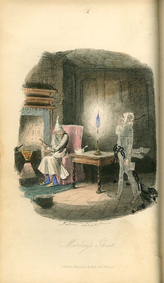 In the spirit of the holidays Fordham University Libraries is displaying a rare first edition of Charles Dickens’ A Christmas Carol in the atrium of the Walsh Library. Daniel “Danny” Madden, GSB ’84, donated the book to the University earlier this year as a way of “conveying my love of my time at Fordham and of two people who were generous beyond words.”