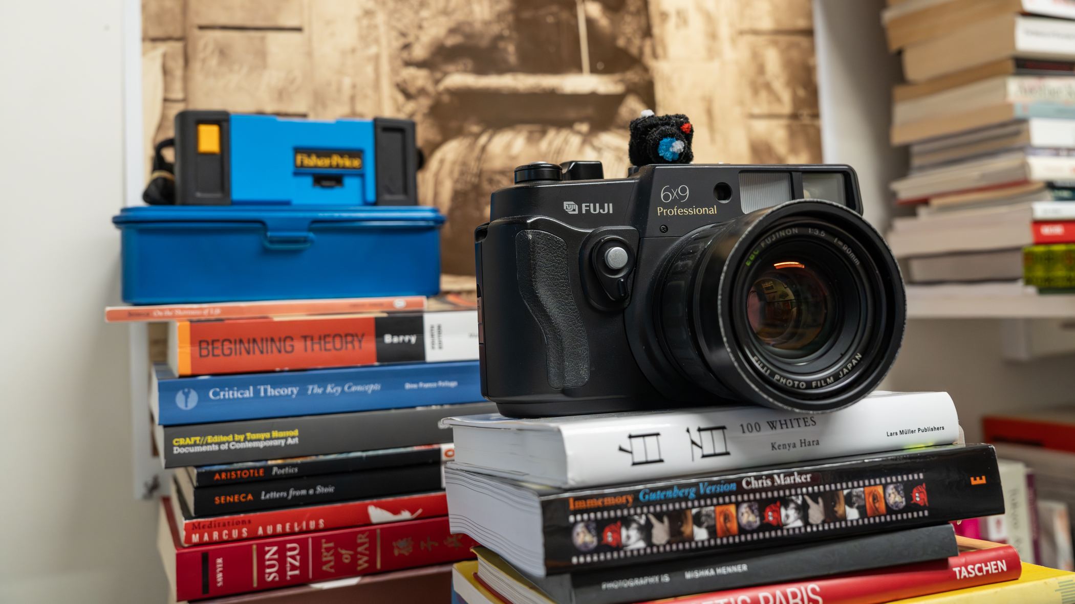“When I visit Japan, I often go to shops that sell really great used cameras and bring them back for our students. You can also buy them through eBay from an American store; they’re often half the condition and twice the price,” he said. “These cameras go into our equipment cage, where we lend cameras to students. But this Fuji camera is so pristine and beautifully kept that I want to admire it for just a little longer.”