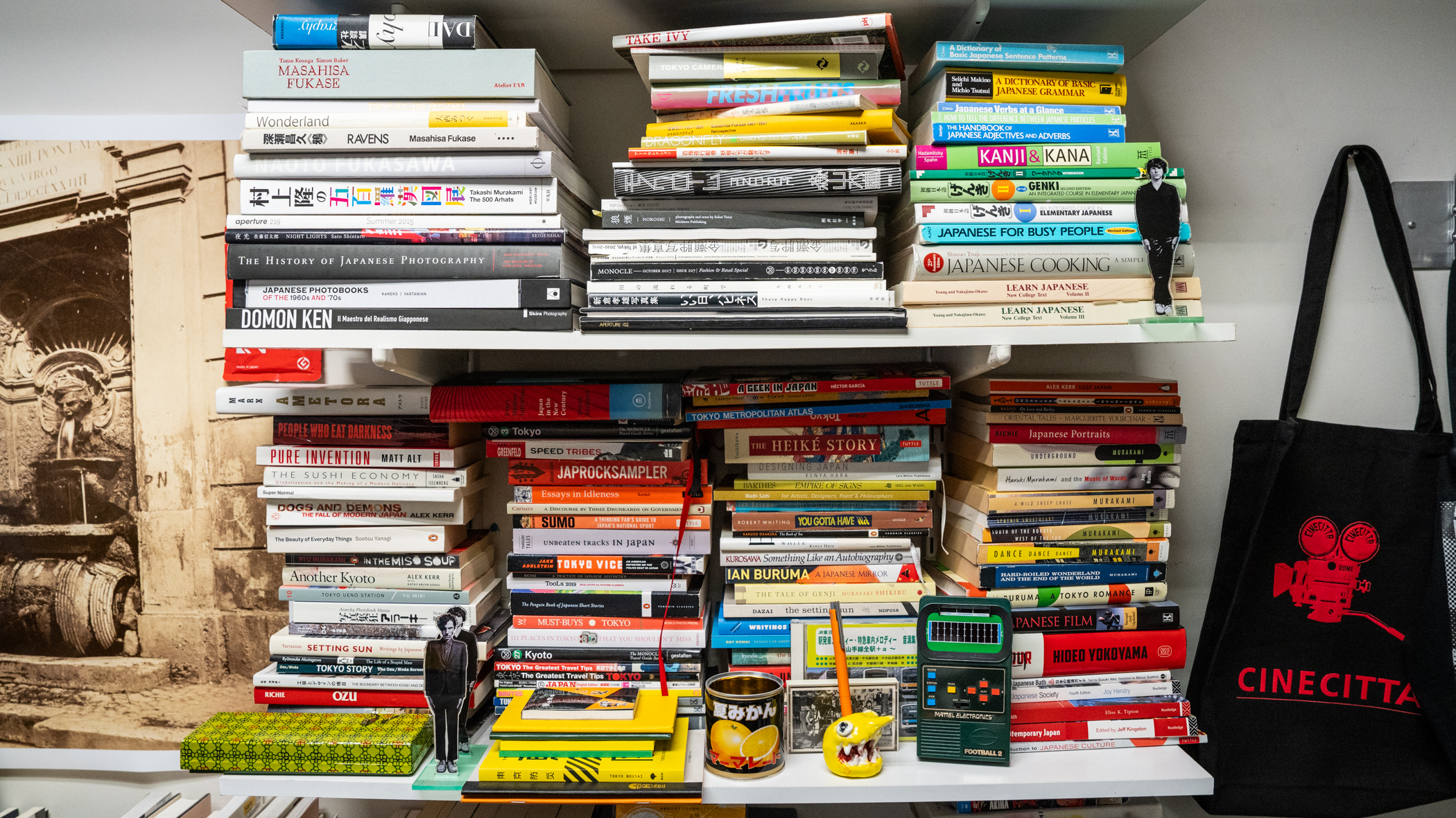 Twenty years ago, Apicella-Hitchcock taught at the Tokyo University of the Arts in Japan. Since then, he has traveled to Japan many times, often bringing Fordham students for his courses that explore life and culture there, including Case Study Tokyo. Along the way, he has amassed a collection of books and items related to Japanese culture—and found his future wife, who grew up on the island of Hikoshima. The best gifts he brought home from Japan were his wife and their son, who was born there.