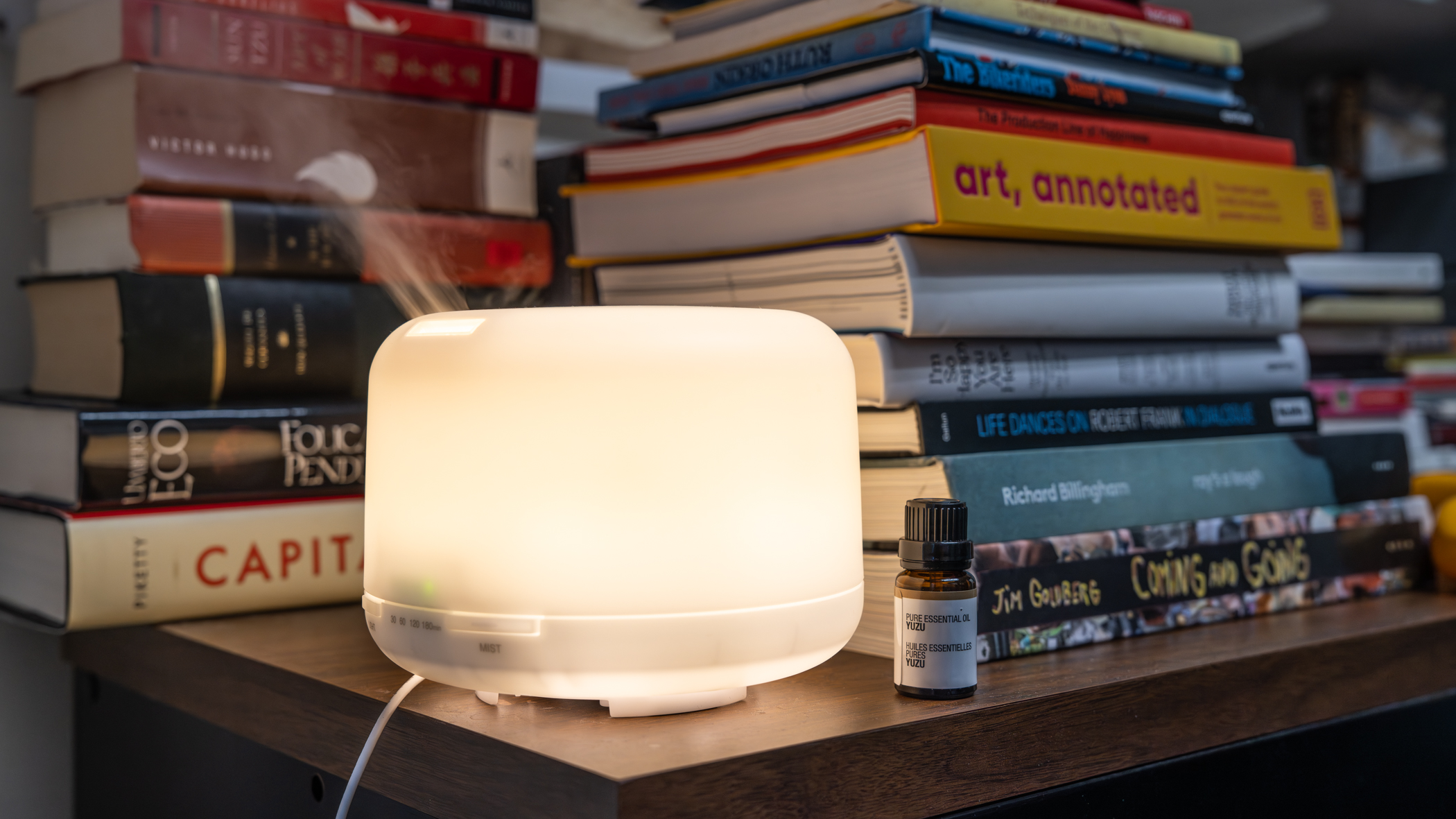 “I bought this aroma diffuser from Muji,” Apicella-Hitchcock said. “It smells great. And if I ever have to do an infernal Zoom meeting, the diffuser makes it look like smoke is coming out of my background. It’s a good icebreaker.”