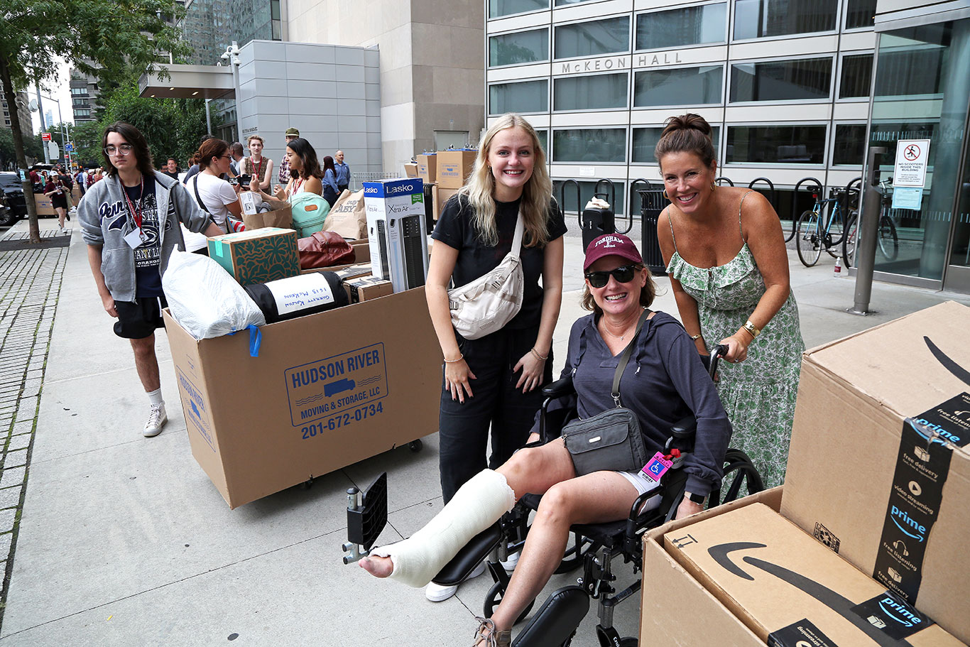 Her mother Tammy Davis broke her leg two weeks before move-in day, but was so determined to see her daughter off, she recruited her friend to help. Although Davis was originally supposed to meet her daughter after she’d moved into her room, she surprised Moshier by showing up in a wheelchair while they were in line on Columbus Avenue.