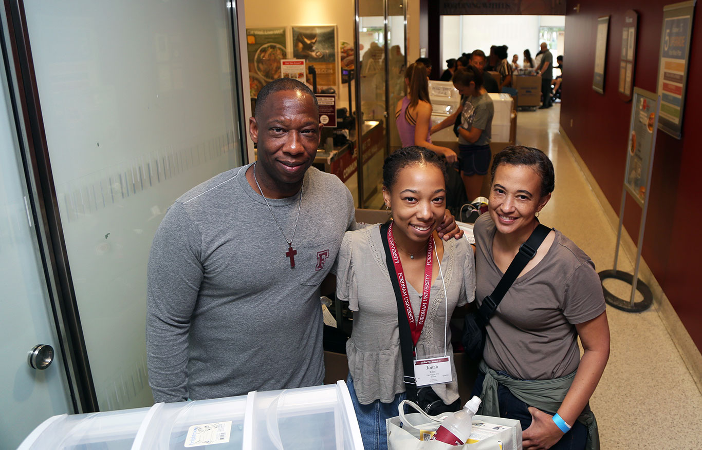 Opening Day at both the Lincoln Center and Rose Hill campuses saw students and families brimming with excitement as they carried their belongings to their new rooms and prepared for their first year of college. They were greeted bright and early in the morning by cheering older student volunteers, decked out in Fordham maroon, yelling each new student’s name and hometown as they arrived. Commuter students were also warmly embraced by their new Ramily, meeting up at the check-in tables and joining in the welcome receptions.