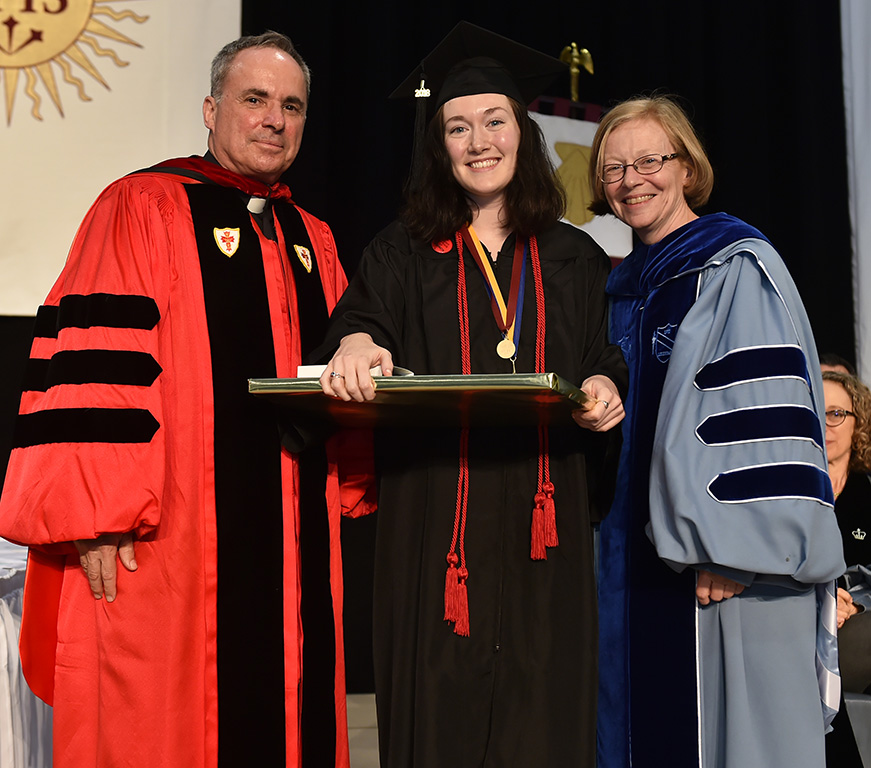The Fordham College Alumni Association Award, which recognizes a senior who embodies the “Fordham spirit,” was awarded to Erin Shanahan, whom Dean Mast praised for her leadership at the student-run newspaper The Ram.