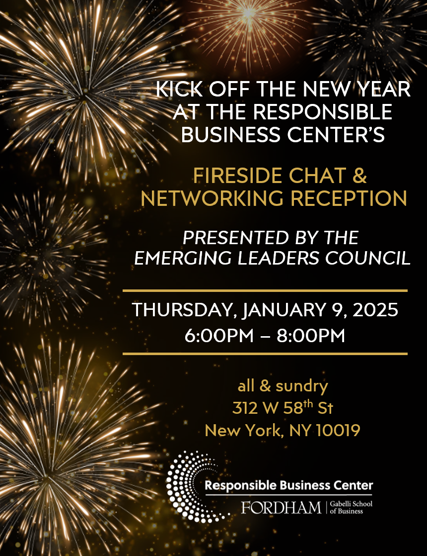 Thursday, January 9, 2025, 6 – 8 p.m. Responsible Business Center’s Fireside Chat and Networking Reception