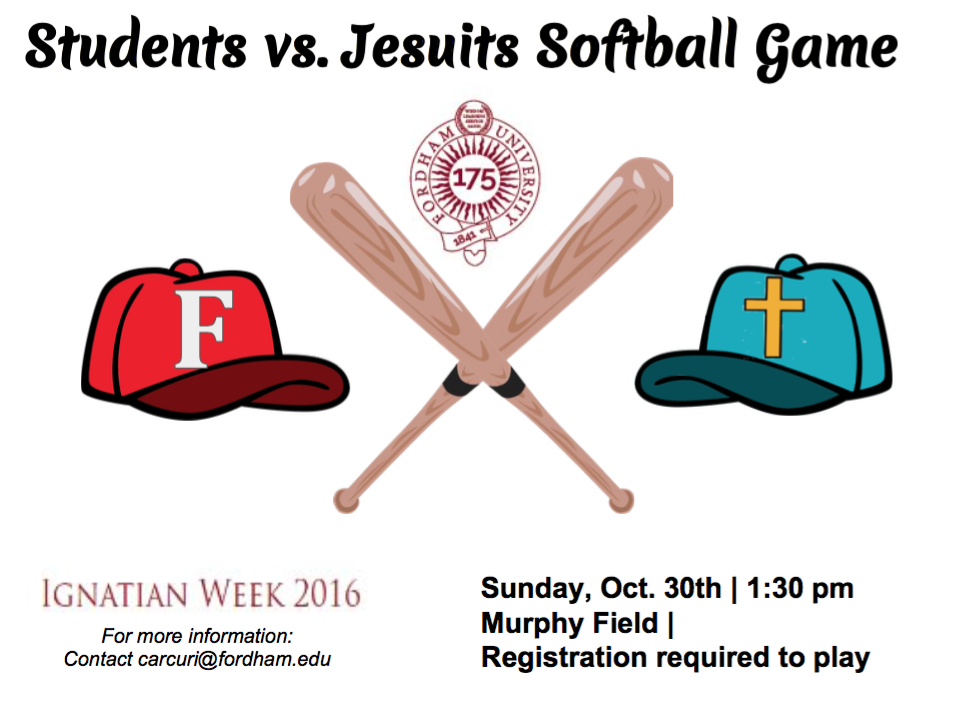 Cheer on members of the Jesuit community and our Fordham students as they take to the field to kick off Ignatian Week. If you would like to play on either team, sign up at www.fordham.edu/cm! For more information contact Cody Arcuri (carcuri@fordham.edu). |
