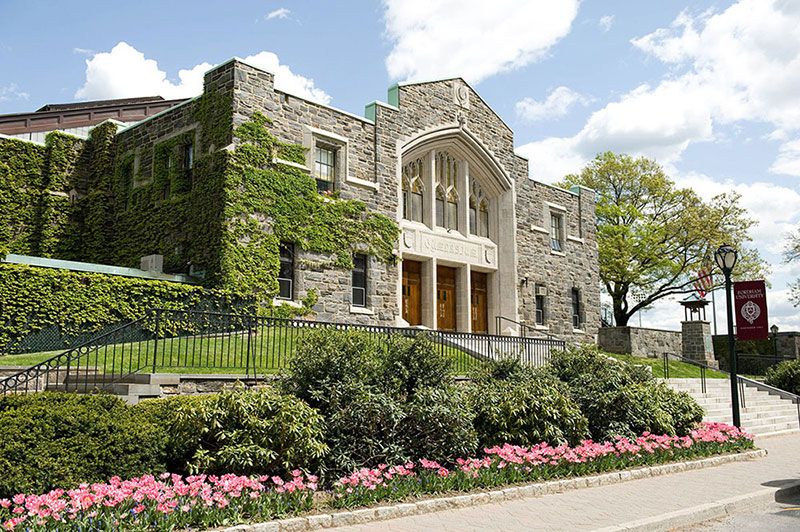 Exterior of the Rose Hill Gymnasium with its stone facade and Gothic-style architecture