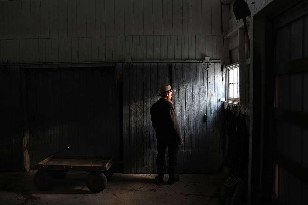 Van Sise spent nearly a week with Amish community member Sylvan Esh before Esh agreed to work with Van Sise on the photograph. Part of getting to know Esh included waking up at 4 a.m. several days in a row to milk his cows, Van Sise said. The Pennsylvania Dutch concept he ultimately depicted with Esh, dæafe, or to have permission to do something, is “extremely, unbelievably important in the culture,” Van Sise said.