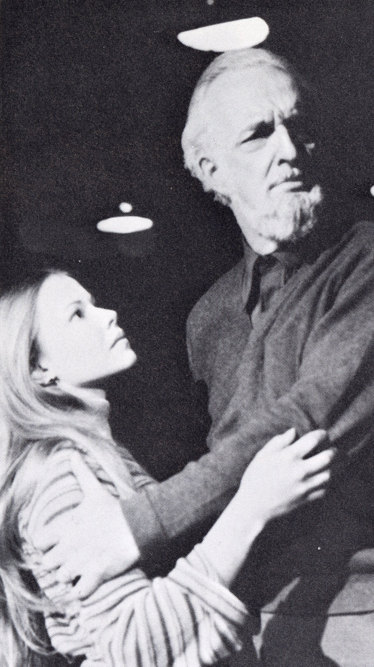 Junior Diane Hammarth, one of two actresses who played Desdemona, in rehearsal with Professor Robinson Stone as Brabantio.