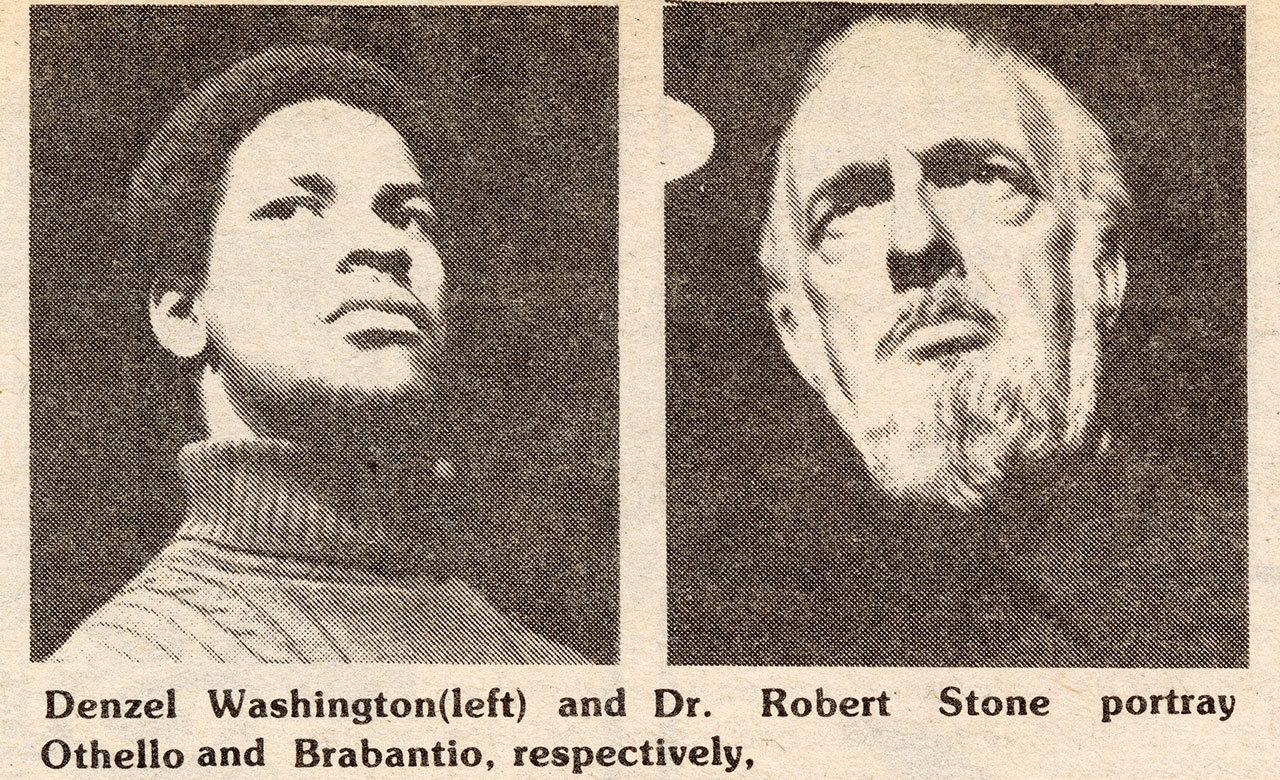 A 22-year-old Denzel Washington plays Othello opposite Diane Hammarth, one of two actresses who played Desdemona in the 1977 Fordham production.