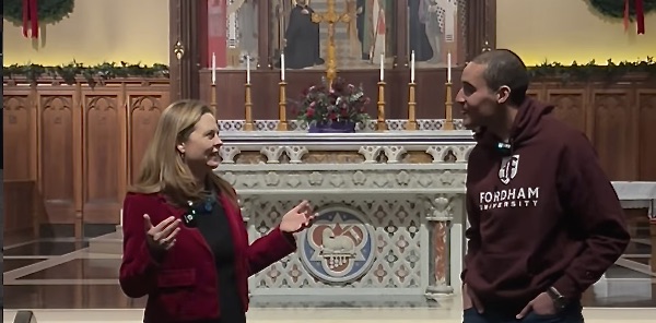 News producer and Catholic influencer Adam Llorens visited Fordham University Church to interview President Tania Tetlow for his Up the Aisle Instagram series. Watch it here.