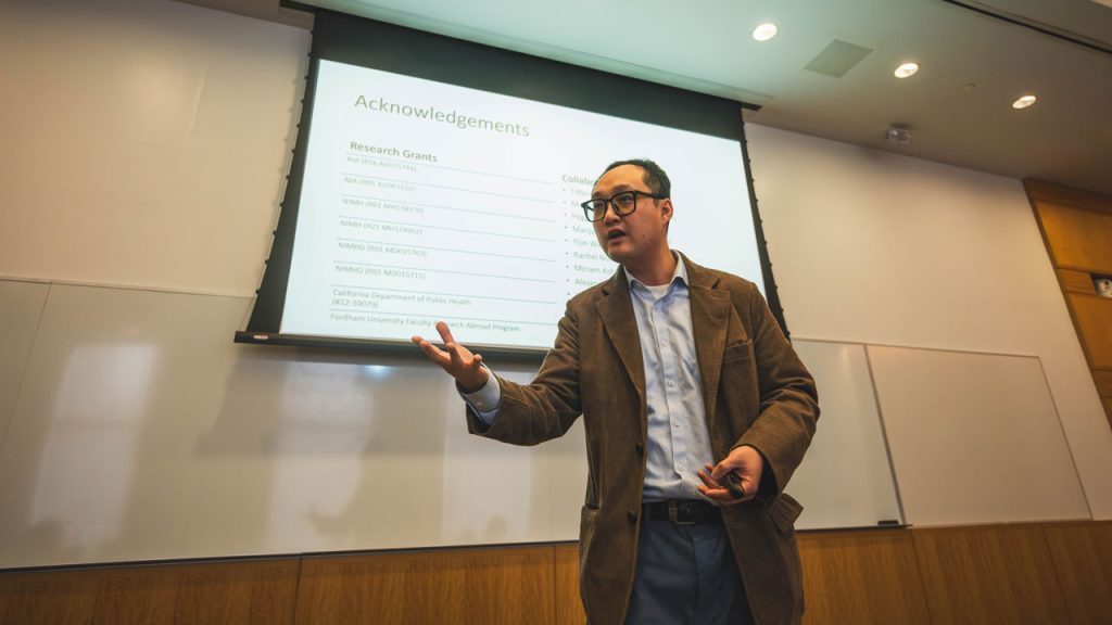 Economics professor Troy Tassier, Ph.D., presented research about the root cause of infectious disease outbreaks in 19th-century New York City. Public officials at the time blamed immigrants for spreading cholera and other diseases, said Tassier. His data told a different story—that as housing laws improved, making buildings safer and better ventilated, death rates from infectious diseases went down in the city.