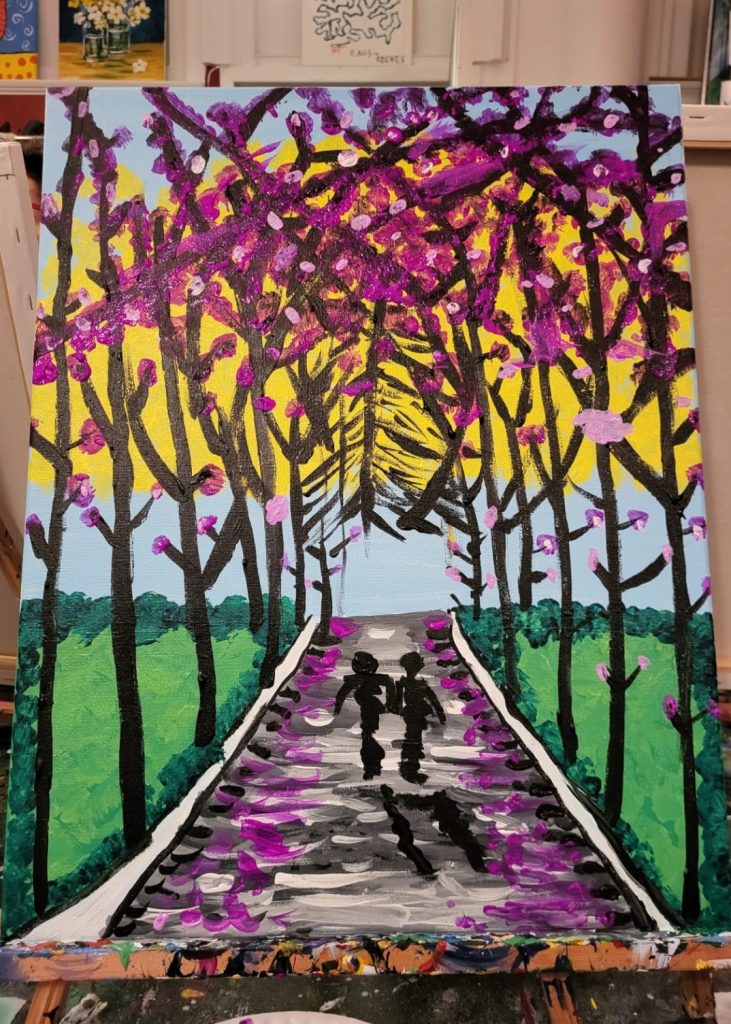 With her daughter, she took a painting class at Rose Hill. “Painting turned out to be a great stress reliever for me,” she said. “A blank canvas lets me put down my ideas, my dreams—whatever I feel.”