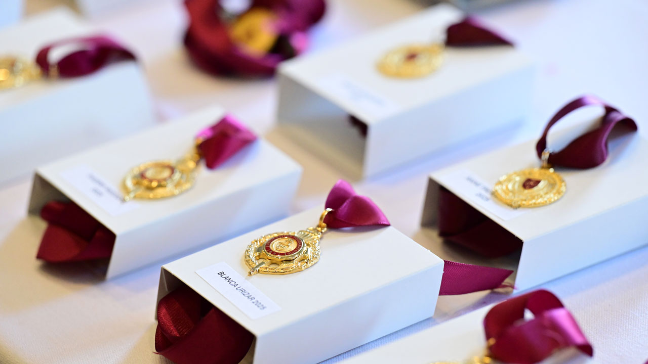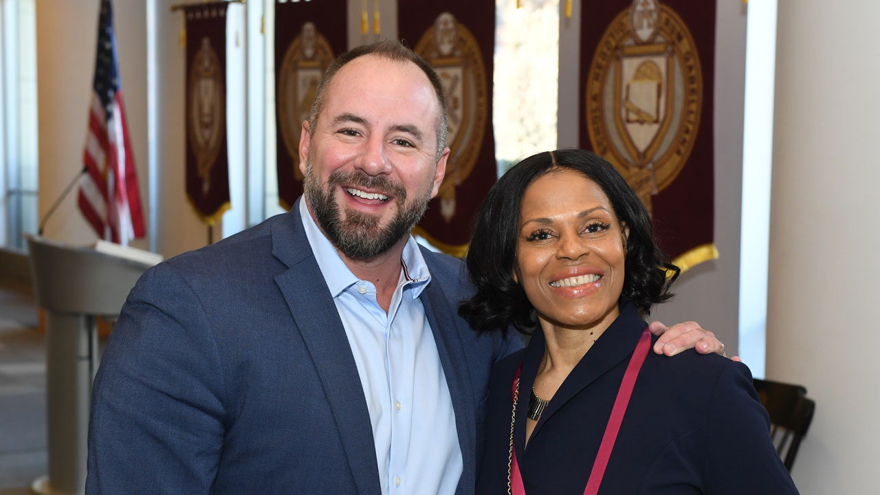 The event is held each spring to show appreciation for Fordham employees’ longstanding service of 20, 40, and 60 years. In recognition of their unique contributions, faculty receive the Bene Merenti award, administrators receive the Archbishop Hughes award, and staff receive the 1841 award. All but one awardee honored on Sunday—recent retiree and 40-year honoree Charlotte Labbe, the former Head of Interlibrary Loan—celebrated two decades of work at Fordham. President Tetlow bestowed a medal to each in attendance as their colleagues, partners, friends, and families applauded them.
