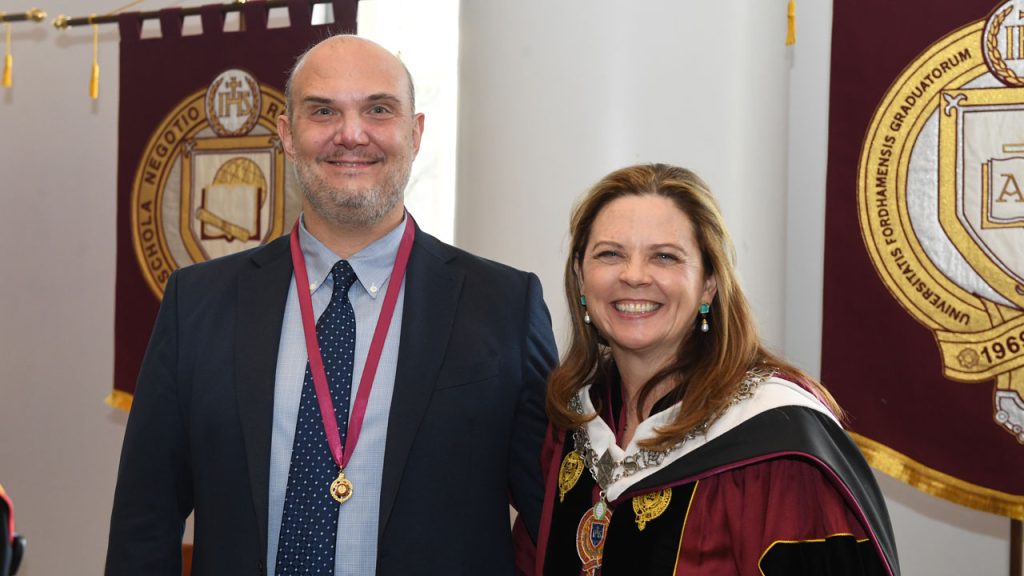 “You have shaped this University, not just through your work, but through your presence,” said Tetlow, enumerating the many gifts the honorees bring to Fordham. “We recognize all your years of dedication and the profound impact you’ve had on generations of students, colleagues, and the Fordham community at large.”