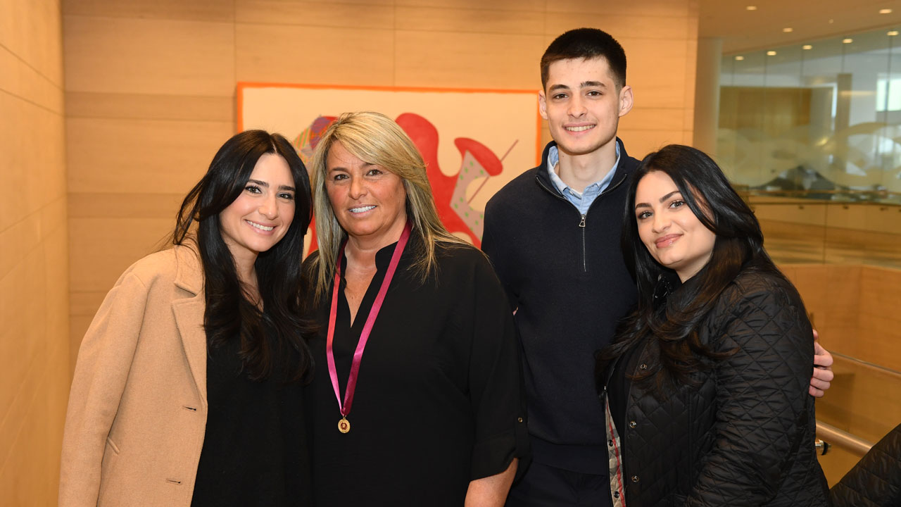 Verenika Lasku, center, surrounded by her family: Valentina (left) and Gabriella, both Fordham alumnae; and Robert, a sophomore at Fordham