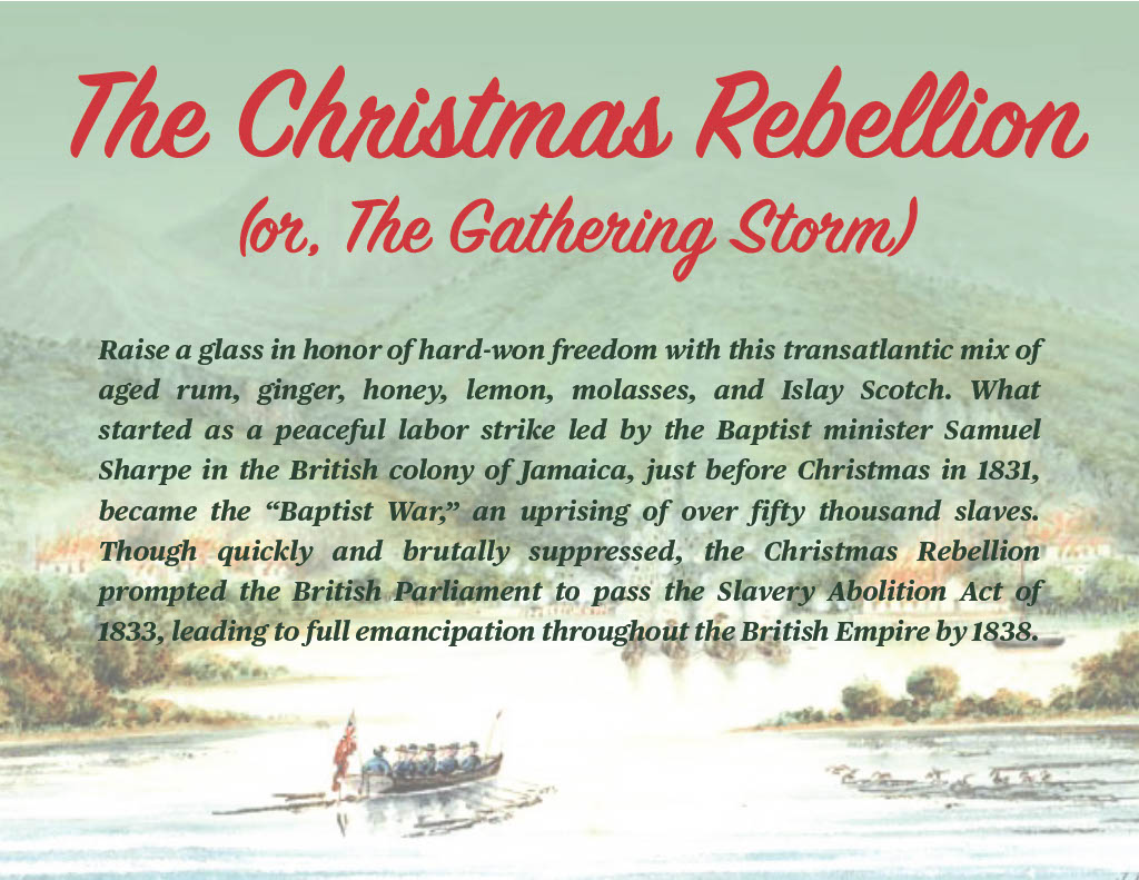 Holiday traditions, religious figures, and the light and dark motifs of winter inspire the two new cocktails they dream up each year. One is often bright and boozy to symbolize the light and warmth of the season. The other cocktail reflects winter’s darker, more introspective aspect.