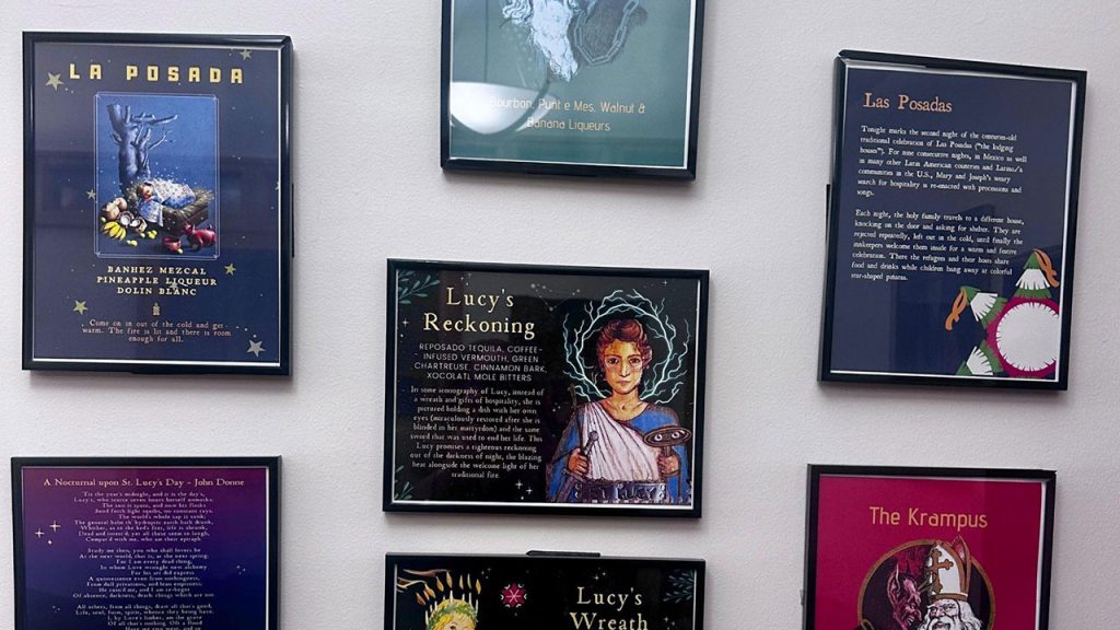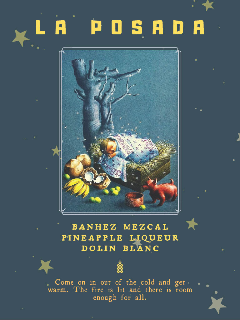 They search far and wide for traditions to reference. Years past have featured cocktails named after the German Saint Nikolaus and his frightening, pre-Christian counterpart Krampus, as well as drinks inspired by the Sicilian martyr Lucy, who wore a wreath of candles to light her way as she delivered food to Christians hiding in the Roman catacombs. (Her eyes were later plucked out, then restored, legend goes.) A brown butter fat-washed bourbon drink, The Golden Age, represented the ancient Roman festival Saturnalia, where societal norms went out the window. And the mezcal cocktail La Posada was inspired by the Latin American tradition of Las Posadas, a nine-night reenactment of Mary and Joseph’s search for lodging as they traveled from Nazareth to Bethlehem.