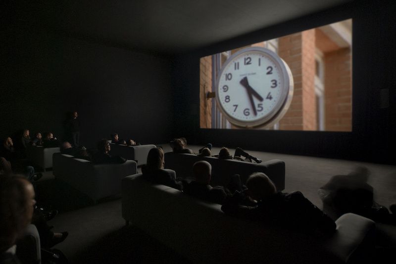 An installation view of “The Clock” by Christian Marclay when it appeared in London, courtesy Paula Cooper Gallery and White Cube. Photo: Todd-White Photography