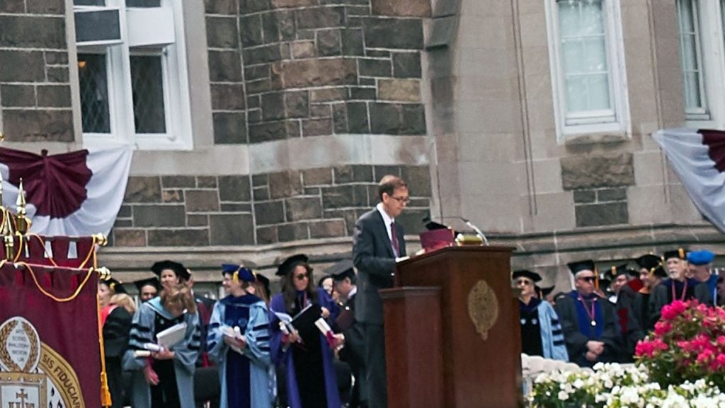 “Ladies and Gentlemen, welcome to the 180th Commencement at Fordham University!” he’ll begin this year’s graduation, the largest ever at Fordham. In DiBari’s 24th year as commencement procession emcee, he’ll once again keep the ceremony on track, summoning nearly 6,000 students to begin their procession toward the steps of Keating with his high-spirited callouts of each Fordham school.