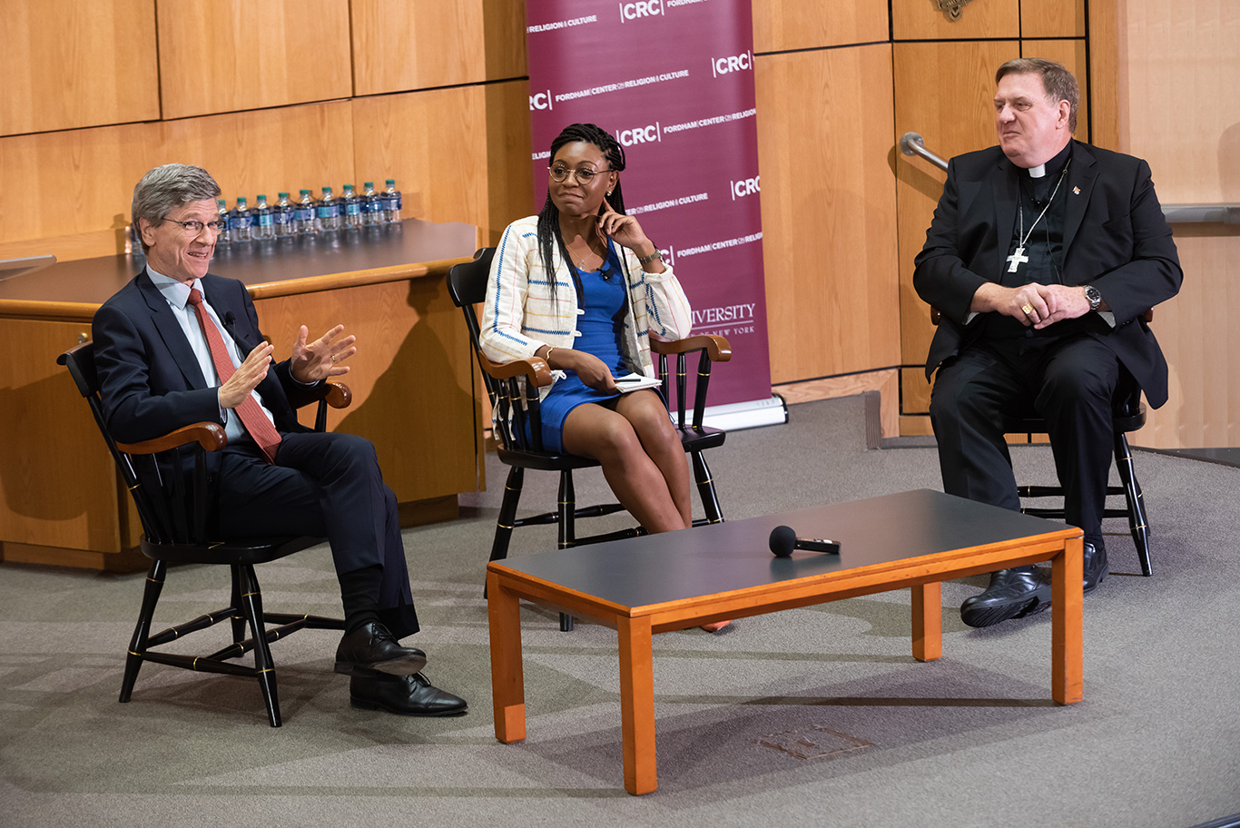 Jeffrey Sachs, Ph.D., director of Columbia University’s Center for Sustainable Development, delivered a response to the Cardinal’s lecture, and joined him afterword in a discussion moderated by Washington Post columnist Christine Emba.