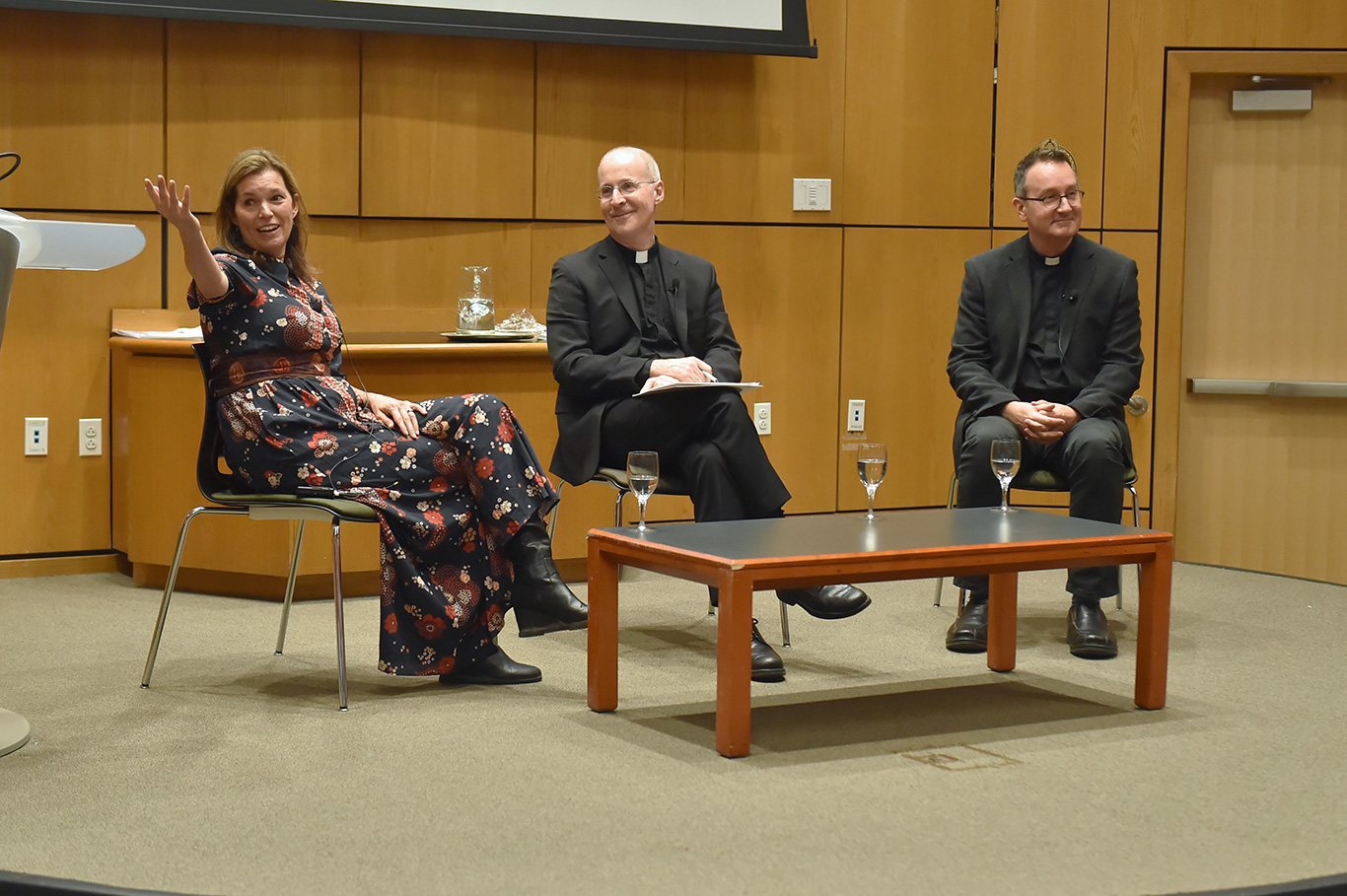 The screening was followed by a discussion with the filmmakers, Mark Bosco, S.J., vice president for mission and ministry at Georgetown University, and Elizabeth Coffman, Ph.D. associate professor of communication at Loyola University of Chicago. The discussion was moderated by James Martin, S.J., editor at large of America Magazine, which co-sponsored the event, and attended by members of O’Connor’s family, including her cousin Francis Florencourt, Catherine and Randy Man, and Robert and Susan Mann.