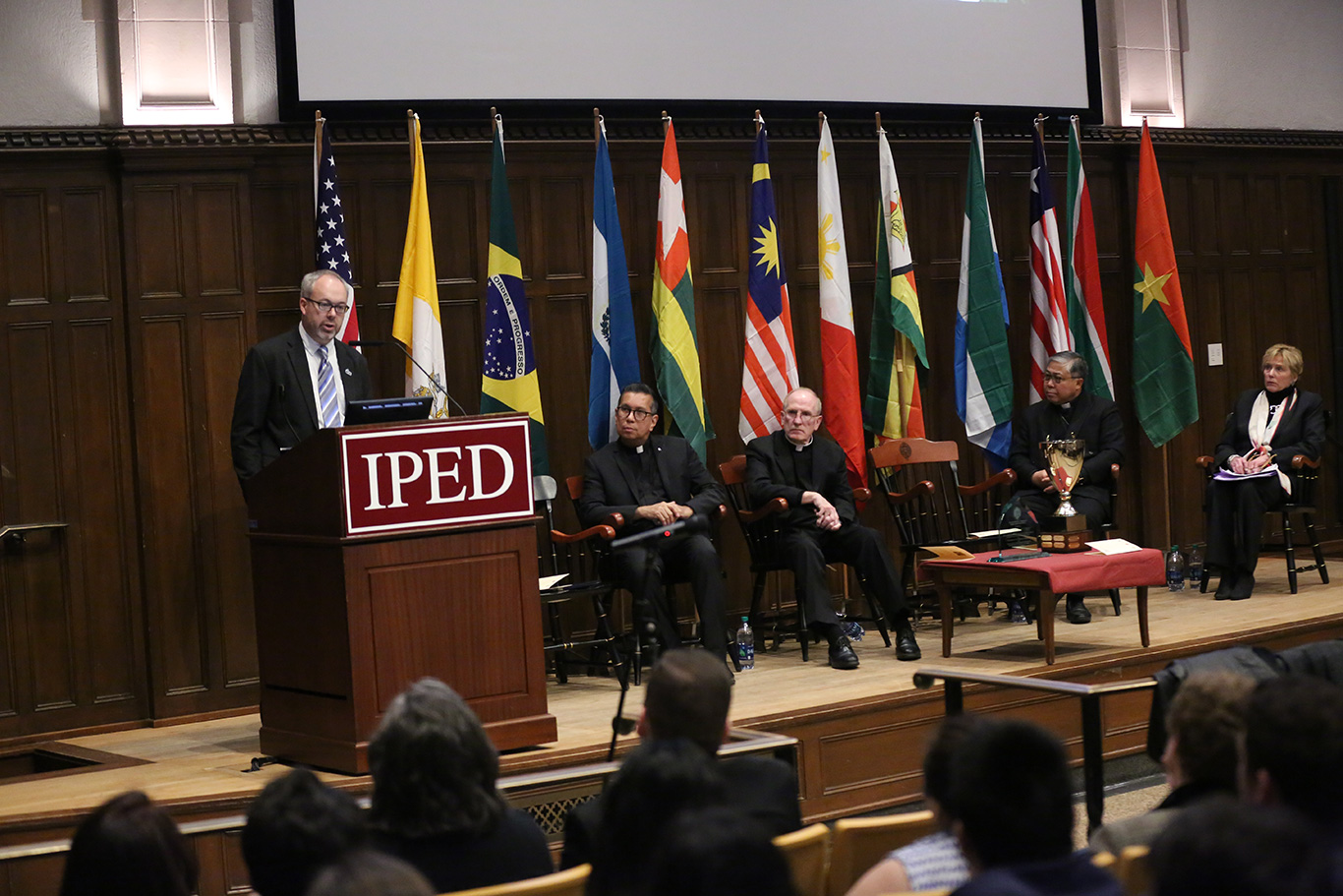The ceremony was followed by a dinner, where the IPED program conferred the John F. Hurley, S.J. Commendation on Tom Dobbins Jr, LAW ’90, for his work as Justice and Peace Coordinator for Catholic Charities of the Archdiocese of New York.