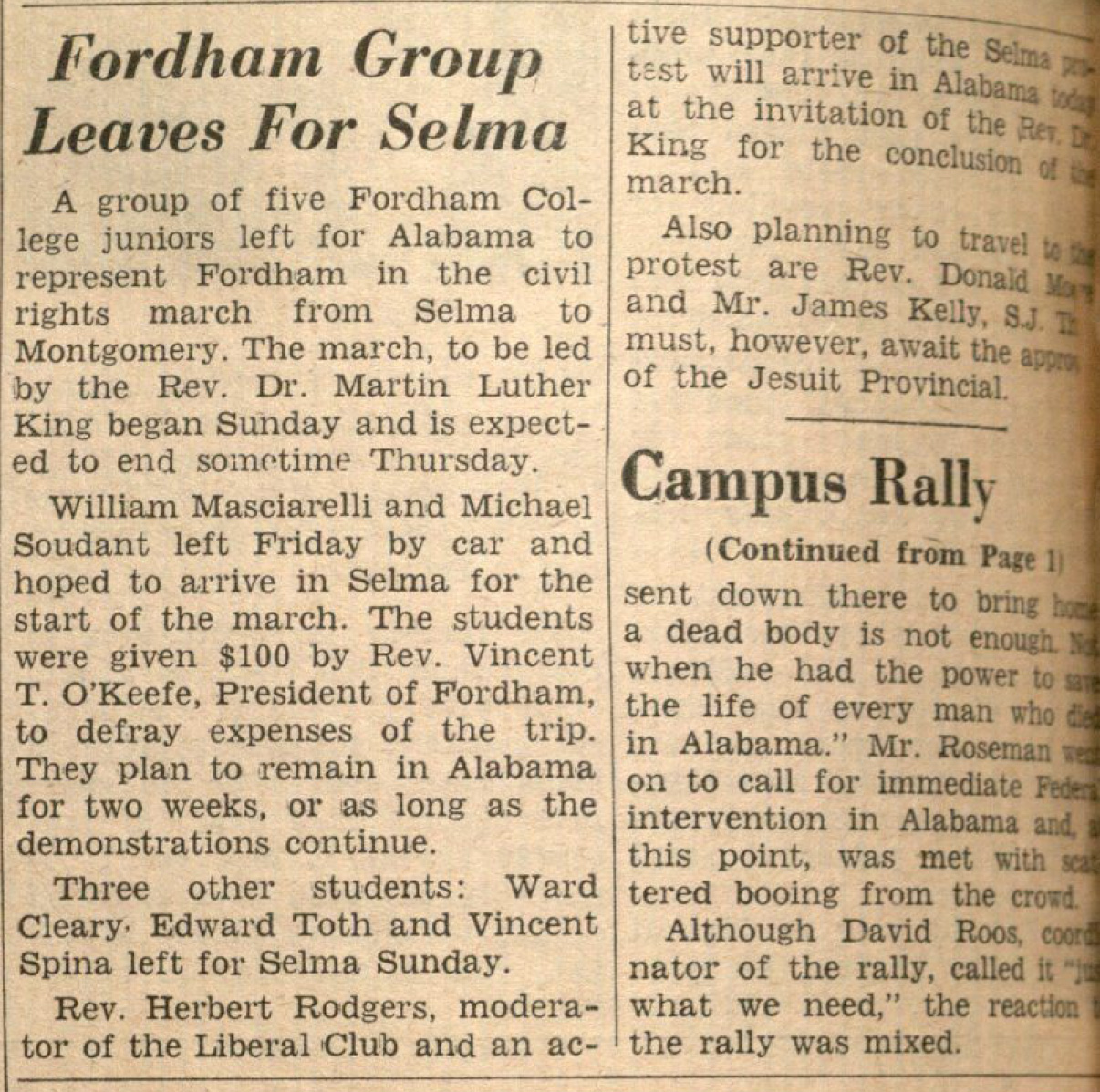 Some Fordham students and administrators were among the marchers. One of them was Ward Cleary, FCRH ’66, LAW ’69.
