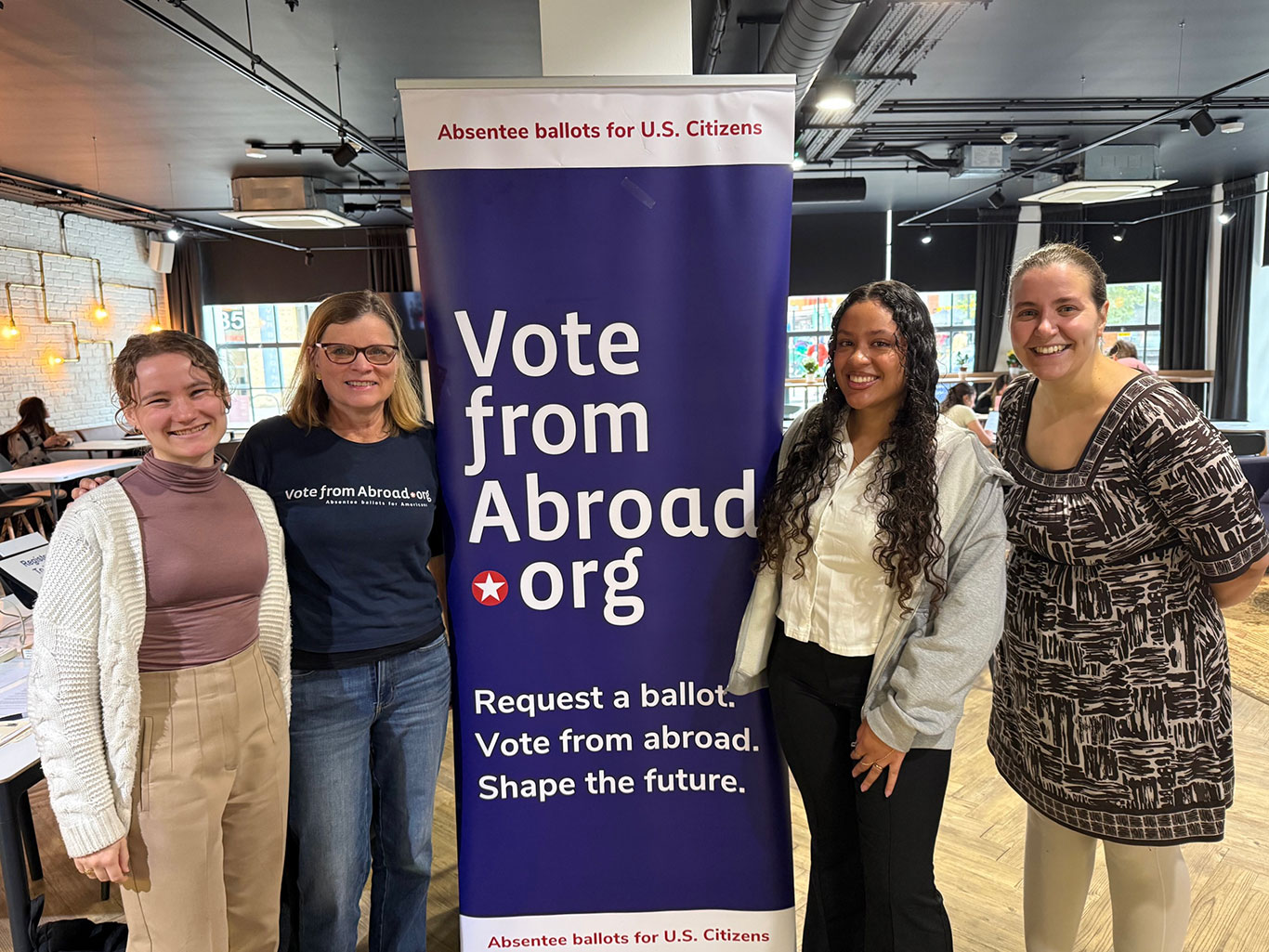 In London, she connected with Vote from Abroad, an organization that promotes voter registration by U.S. citizens living overseas. She staffed voter registration tables this month, signing up students to vote absentee in elections in New York, Pennsylvania, and New Jersey.