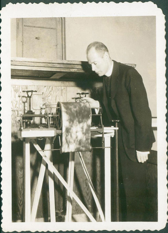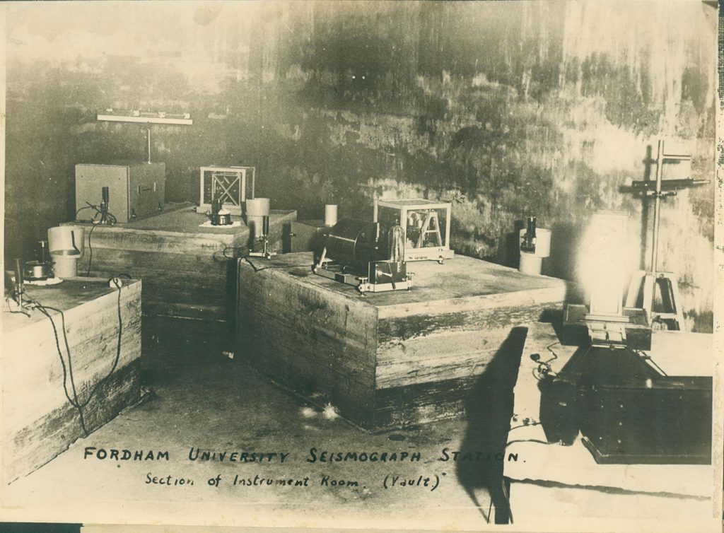 Fordham first got involved in seismology in 1910—along with nine other Jesuit colleges—through the Seismological Society of America, which had a Jesuit priest as one of its founding members. That year, a seismograph was installed in the basement of Cunniffe Hall. In 1920, Joseph J. Lynch, S.J., a physics instructor, took over the station.