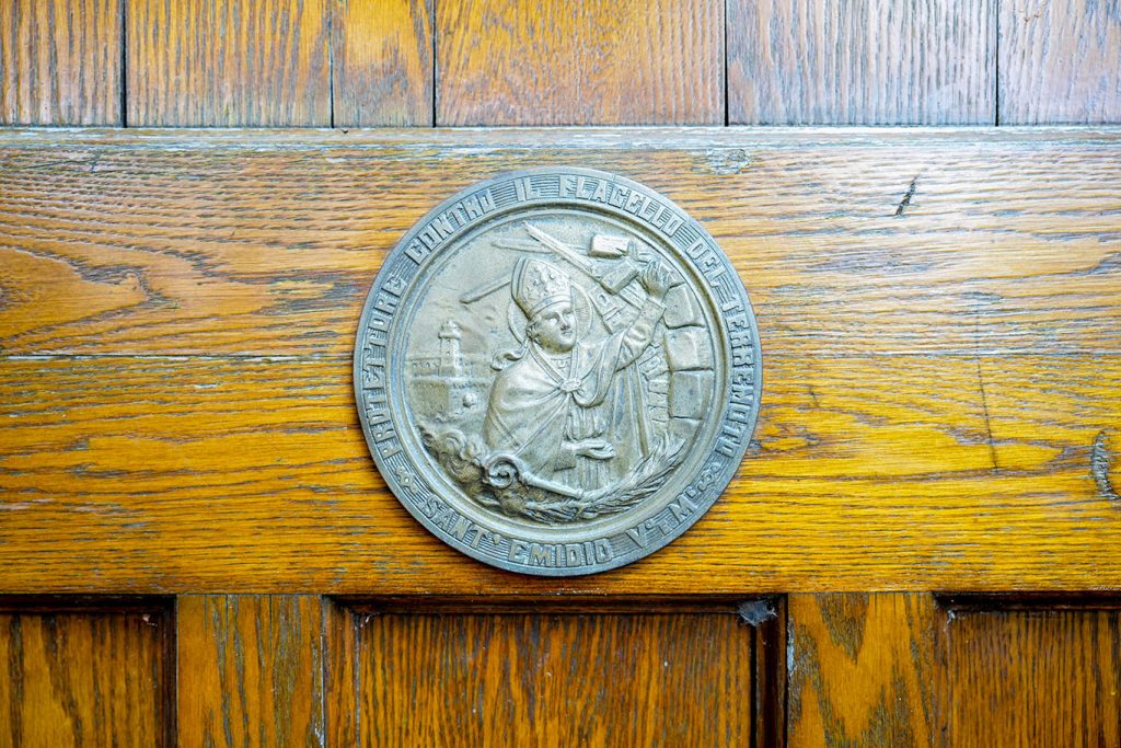 Funding for the construction was provided by William Spain, whose son William, a physics student at Fordham, died that year. It was formally blessed by Bishop John Collins, S.J., Fordham’s 13th president, in a ceremony on Oct. 24, 1924. To honor the occasion, Pope Pius XI sent a bronze plaque with an image of St. Emidio, the divine protector against earthquakes, that is still embedded in the building’s exterior door.