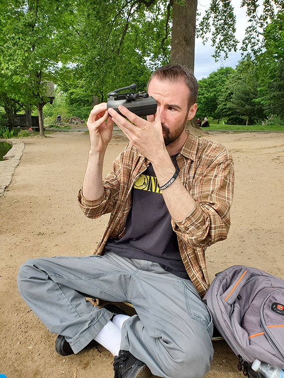 Last month, Kausch, who goes by the Twitter handle @NYCMicrobes, tweeted out the view he’s had in the lab with the wider world. With the aid of an Em1 portable microscope and an iPhone, he created videos of several algae, including synura, oocystis, and his favorite, euglena, flitting and bouncing around in their aquatic world. The videos, which he set to music that he’s recorded with friends, are a side project, but have attracted some attention; the Quebec City newspaper Le Soleil included them in an article published in their science section in July.