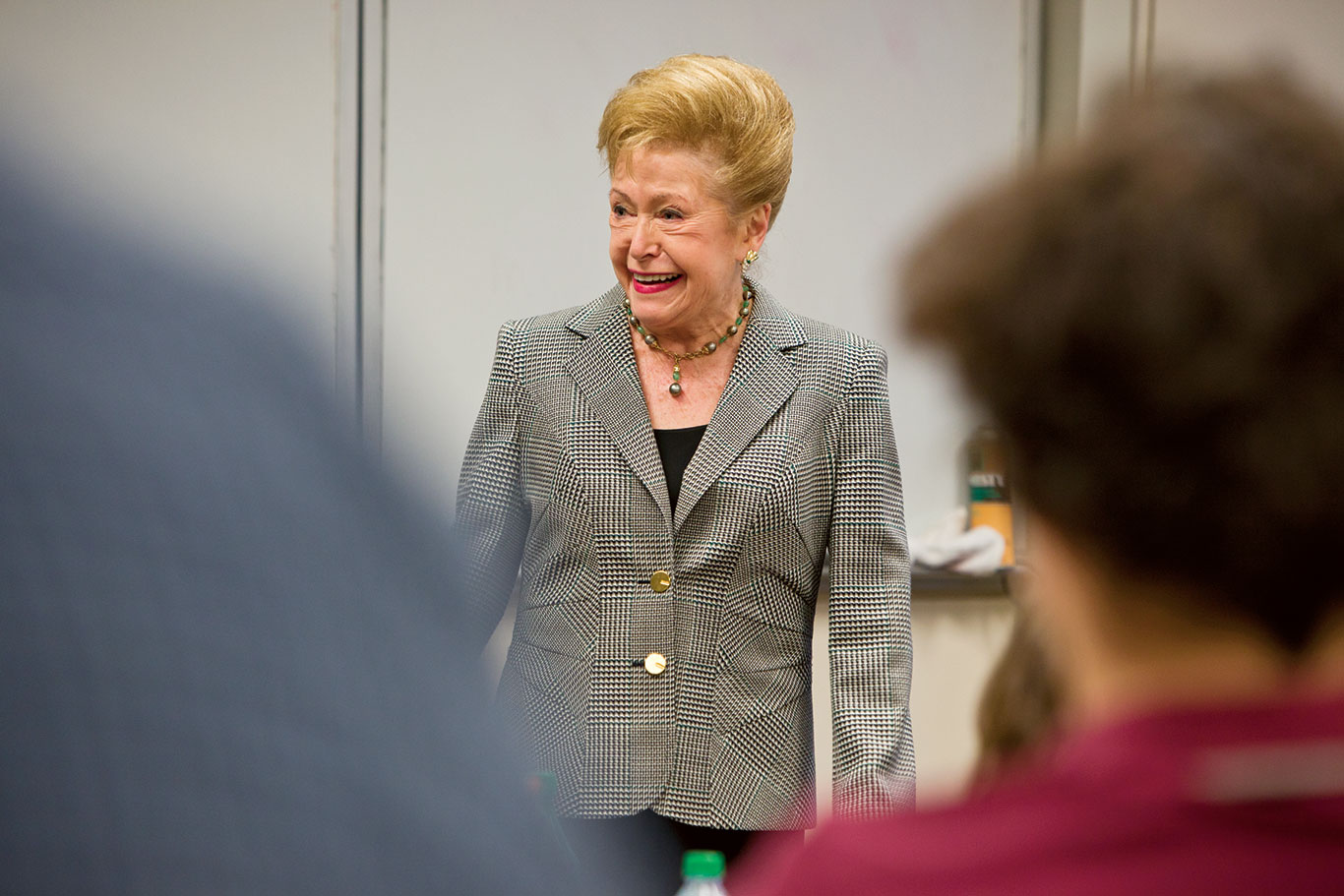 Clark was generous with her time with fellow alumni as well. Lynn Neary, TMC ’71, who recently retired from National Public Radio, covered Clark’s 90th birthday celebration in 2017 and Veronica Dagher, GABELLI ’00, ’05, host of the Wall Street Journal podcast Secrets of Wealthy Women, interviewed her in 2018.