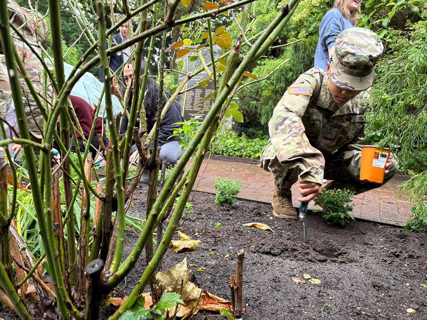 Members of Fordham’s ROTC helped plant chrysanthemums.