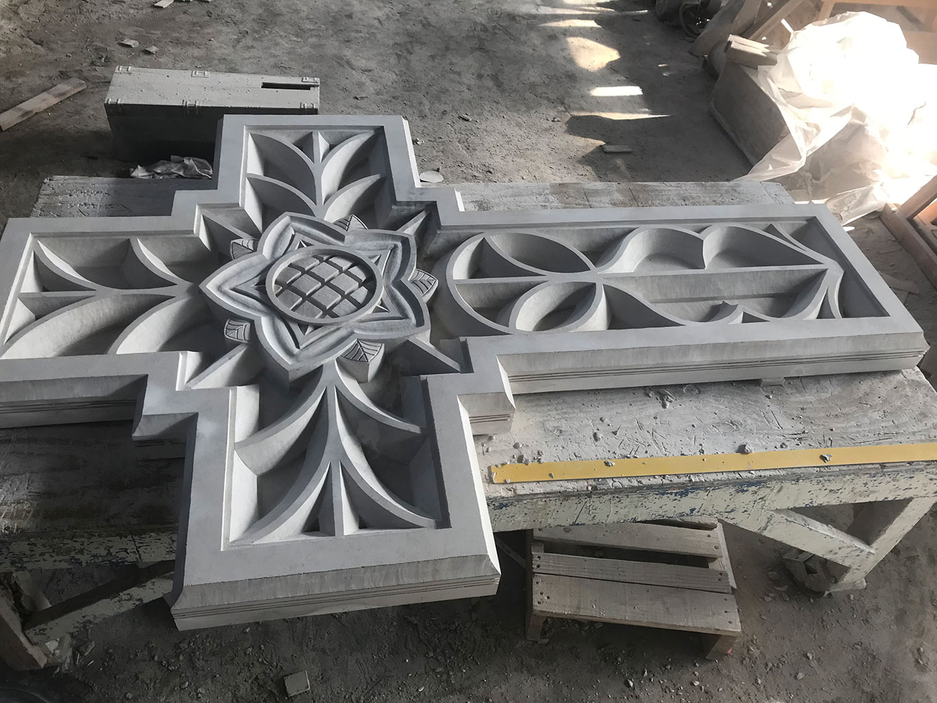“It’s a talent God gave me,” said Michael Orekunrin, who carved the cross from a 2,600-pound block of limestone for the Mount Vernon-based Petrillo Stone Corporation. The recently completed sculpture will be installed in January.