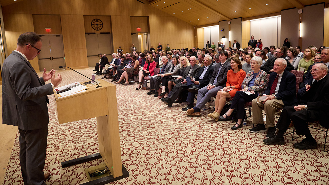 In his address, “Building an Alliance of Grace: The Work of Ecumenism in an Age of Anxiety,” Father McShane spoke of efforts by Pope Francis and His All Holiness Ecumenical Patriarch Bartholomew to overcome the divide between the Catholic and Eastern Orthodox churches. Known as the Great Schism, it dates from 1054, when religious disagreements and political conflicts drove the two churches apart.