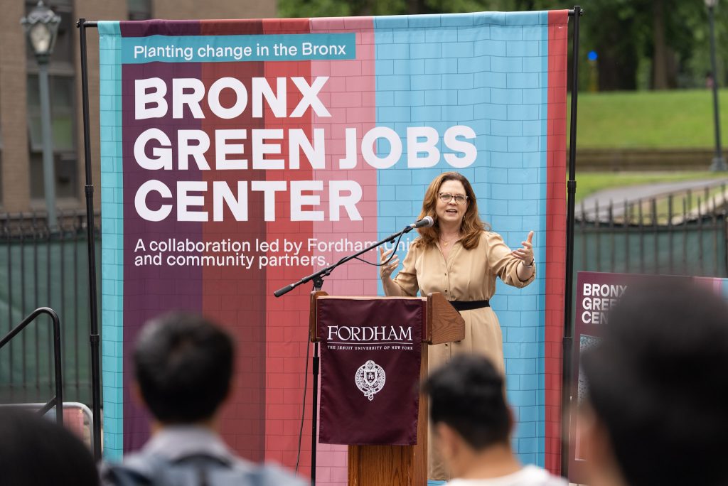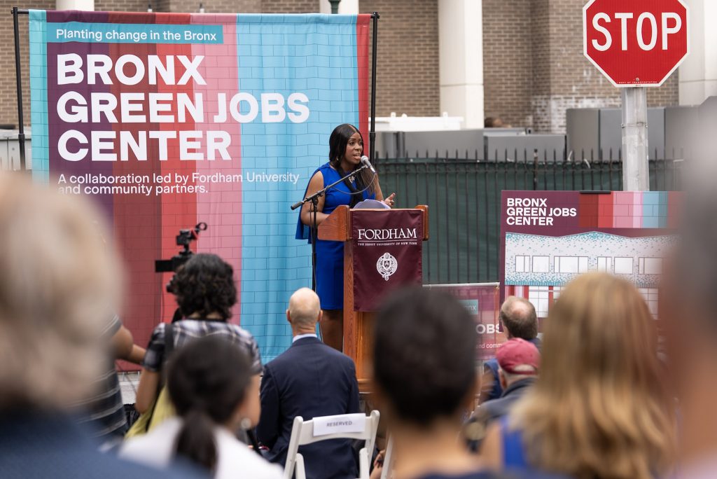Fordham broke ground today on the Bronx Green Jobs Center, a trailblazing workforce training initiative to help community members land good-paying jobs in New York’s vibrant green economy. Created in close collaboration with local community groups, the center will train local talent to thrive in high-demand fields, driving the transition to a more sustainable economy.
