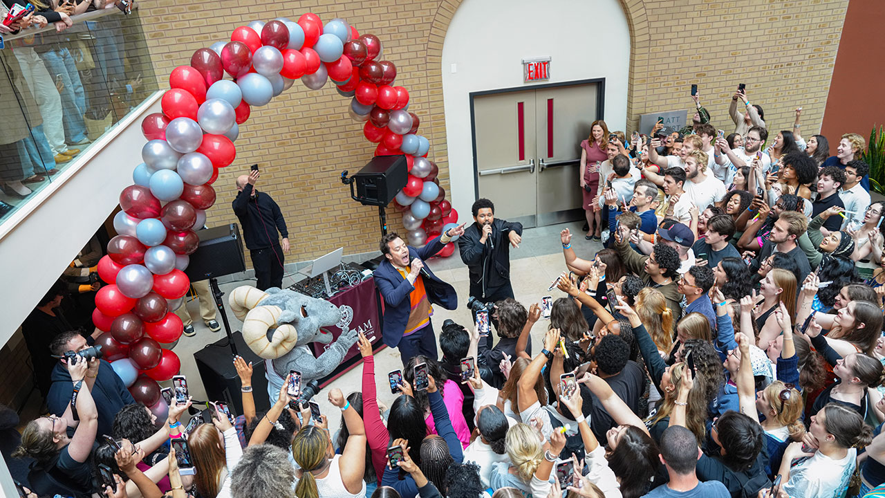“I’ve never deejayed before in my life … I just figured it would be fun, because I love Fordham,” joked late-night host Jimmy Fallon, before cueing up the song “Blinding Lights.” Enter the Weeknd, prompting huge roars from the crowd. The Grammy winner also sang his hit “Can’t Feel My Face,” and the performance was featured that night on The Tonight Show, taped just one mile south of Fordham’s Lincoln Center campus. Not a bad way to start the “Weeknd!”