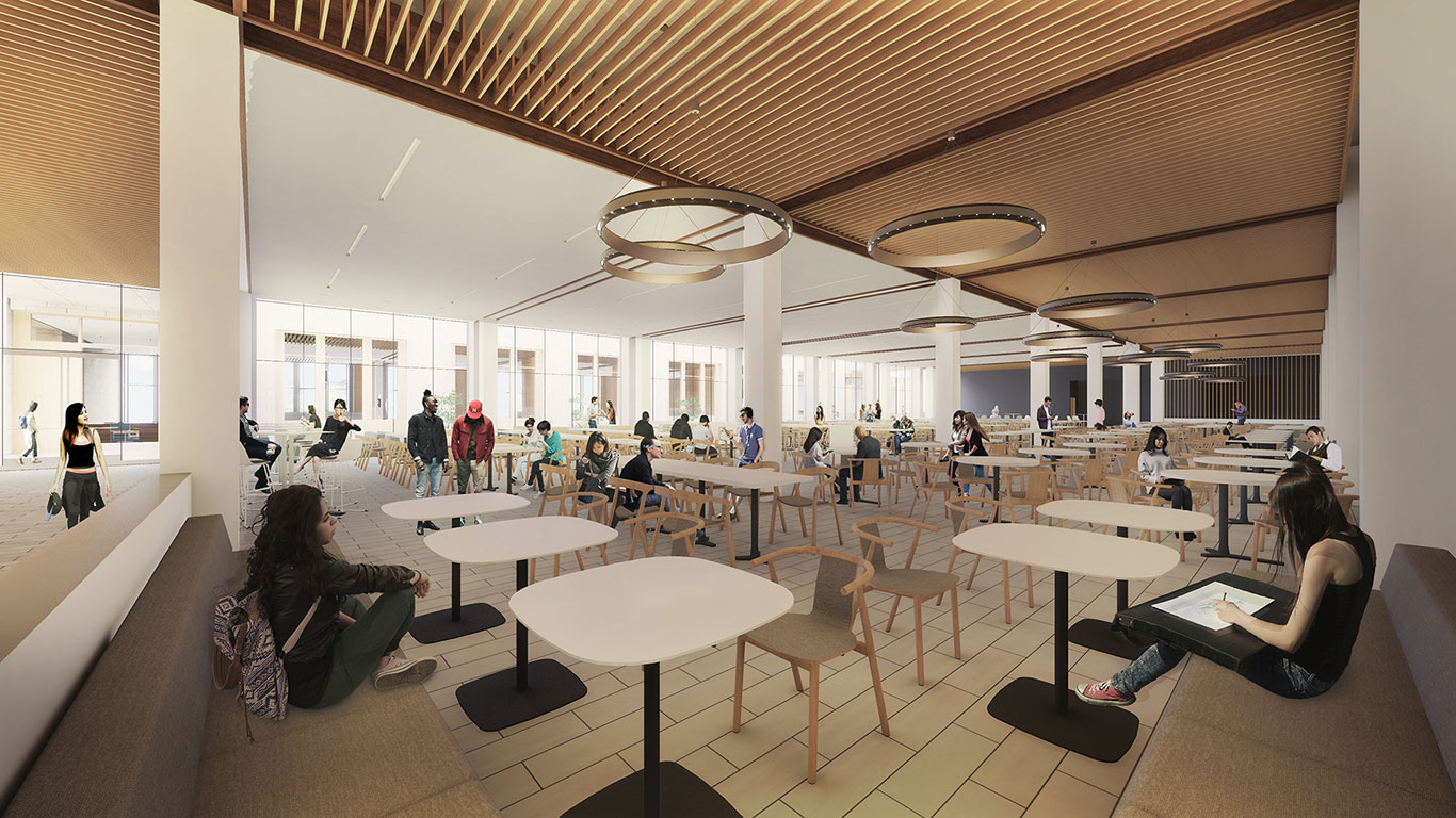 A rendering of the new campus center’s first-floor lounge.
