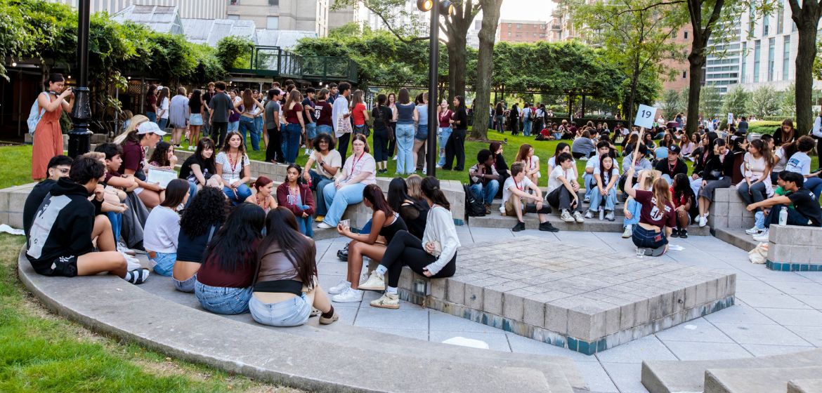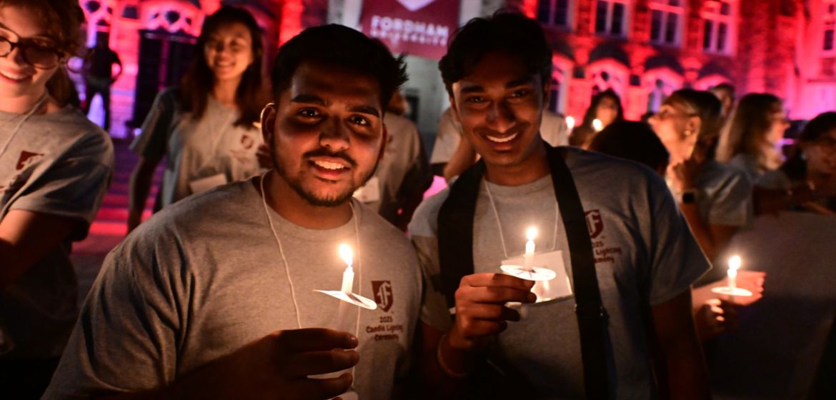 After sunset, students gathered on Edwards Parade for a candlelight ceremony, a tradition that marks the beginning of the year and new students’ Fordham journey.