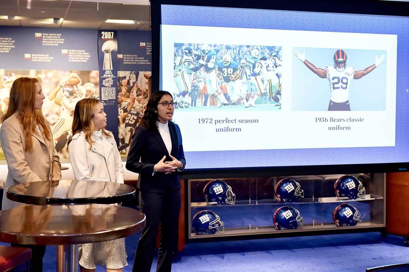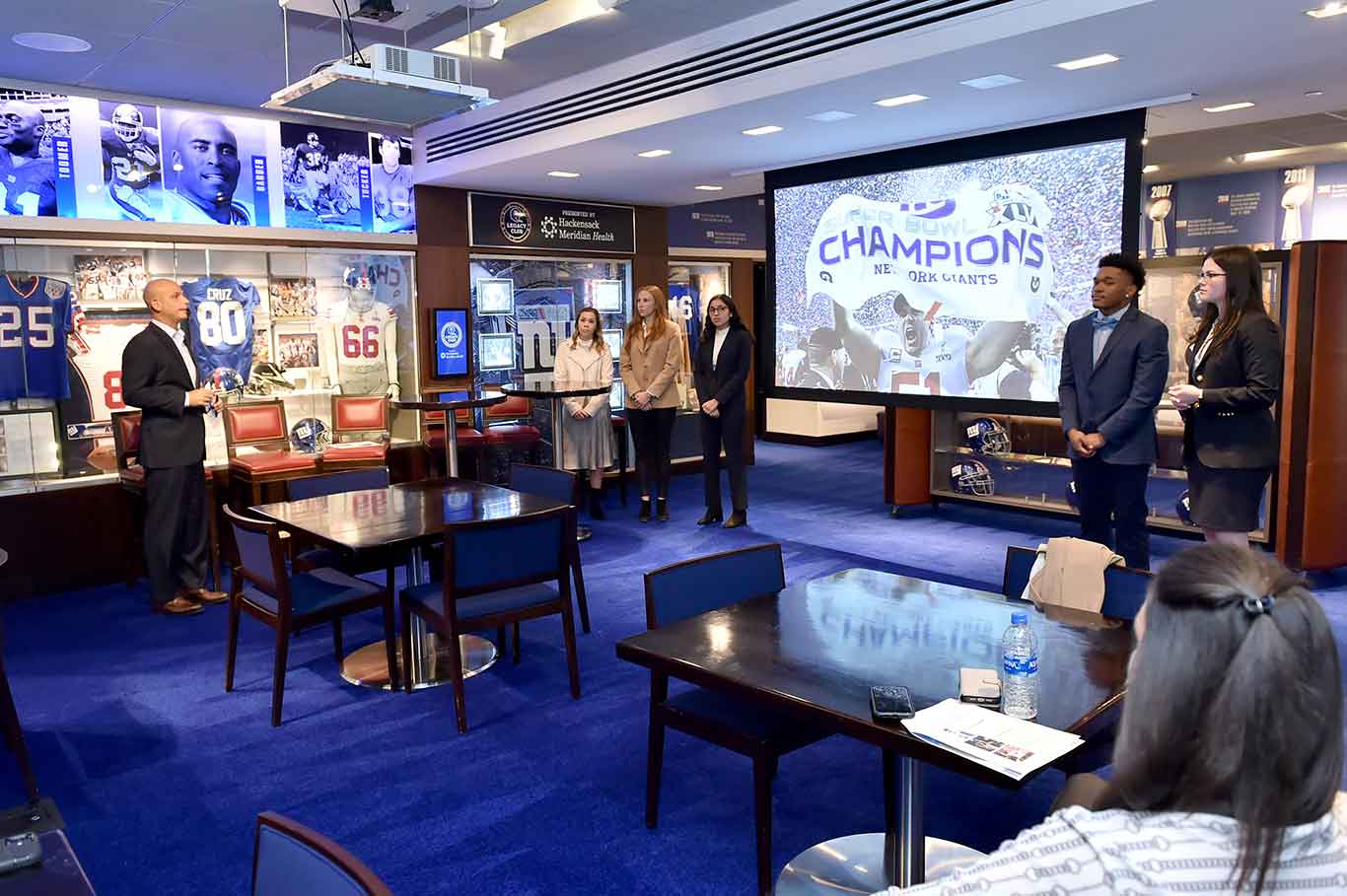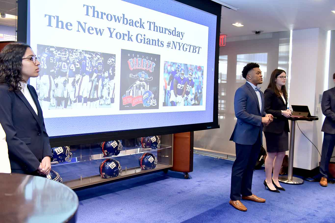 They were there to present their marketing ideas to 30 executives from the New York Giants organization. The presentation was a culmination of a study they did on ways to enhance the fan experience on game day and increase the appeal of the game to a younger generation.