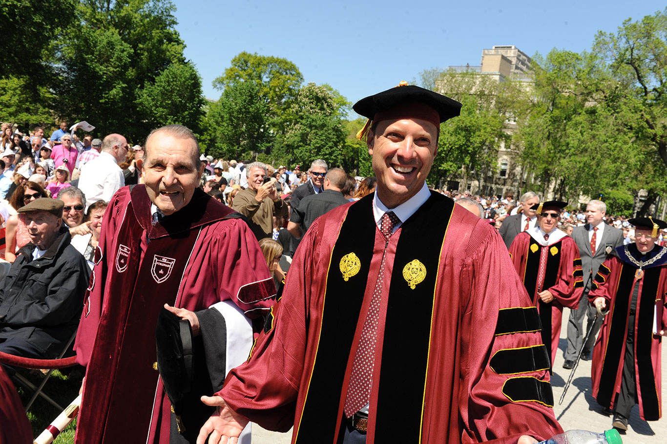 Cammarosano accompanied Tino Martinez at Fordham’s 172nd Commencement, where he received an honorary degree. Photo by Bruce Gilbert
