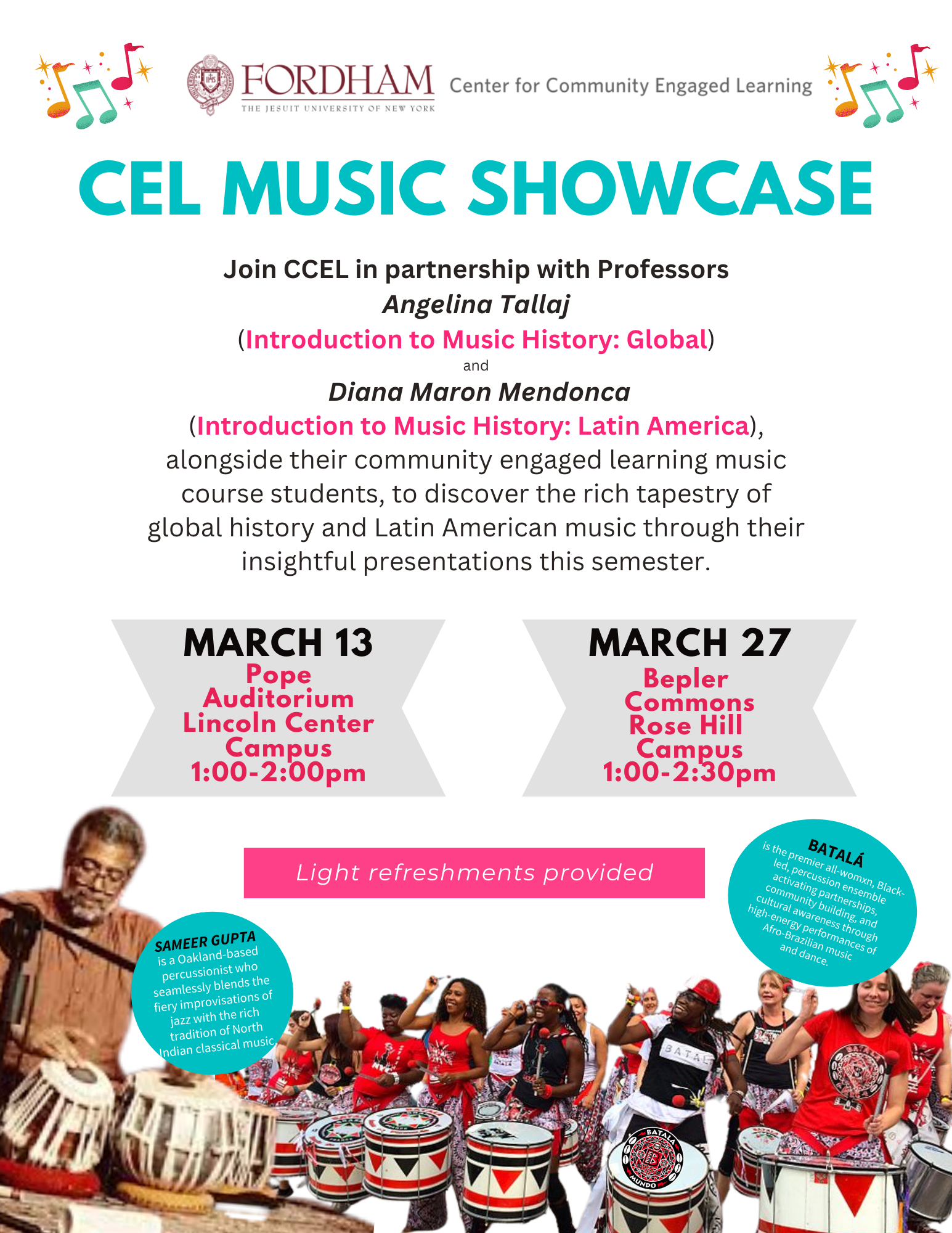 Thursday, March 27, 2025, 1 – 2:30 p.m. Music Showcase: Afro-Brazilian Beats & Energy Featuring Batalá