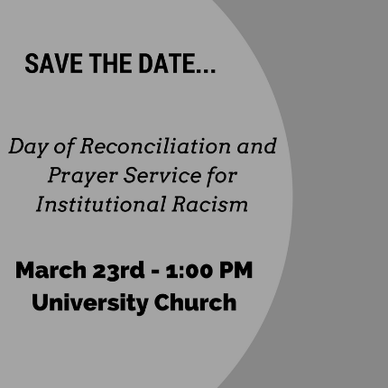 Thursday, March 23, 2017, 1 – 5 p.m. Day of Reconciliation and Prayer Service for Institutional Racism